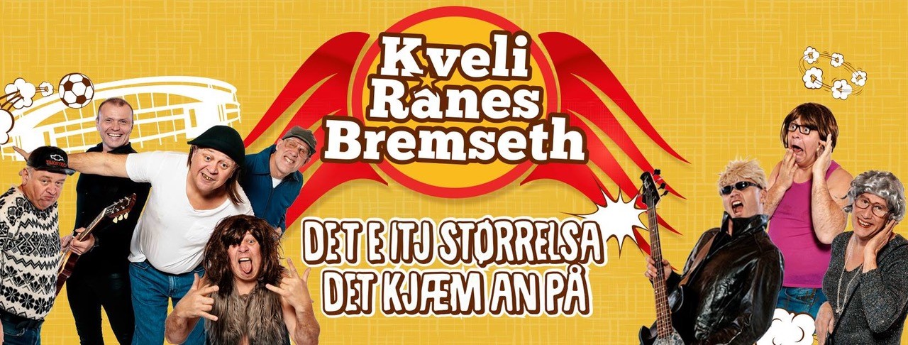I løpet av fem år og fem ulike show har gruppa Kveli Rånes Bremseth blitt store publikumsfavoritter i Midt- Norge. Arnt Egil Rånes er sologitarist i DDE og har reist Norge på kryss og tvers i 25 år. I Kveli Rånes Bremseth er han musiker, vokalist, musikk- og videoprodusent. I tillegg er han den stødige side-kicken til de elleville figurene som fyller scenen. Harald Morten Bremseth har 30 års fartstid i Lånkerevyen, som er norges mestvinnende revygruppe i NM i revy. Han ble utpekt til Norges beste revyskuespiller av Tom Sterri, og har blant annet spilt i RiksRevyen på Chat Noir. Sigmund Kveli har skrevet tekster og underholdt folk i over 40 år. Også han har flere norgesmestertitler fra NM i revy, og har vært med å skape den unike ”Kveli-humoren” som de fleste trøndere nikker gjenkjennende til. Han spilte også i RiksRevyen på Chat Noir. Med showet Det e itj størrelsa det kjæm an på, fortsetter de elleville historiene som utspiller seg i fantasigrendene Brein, Lein og Klein.